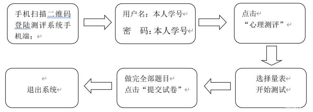 3.测评方式:学生自测。学生扫描二维码(见附件1)登陆测评系统手机端自行填写量表,操作流程见附件。
