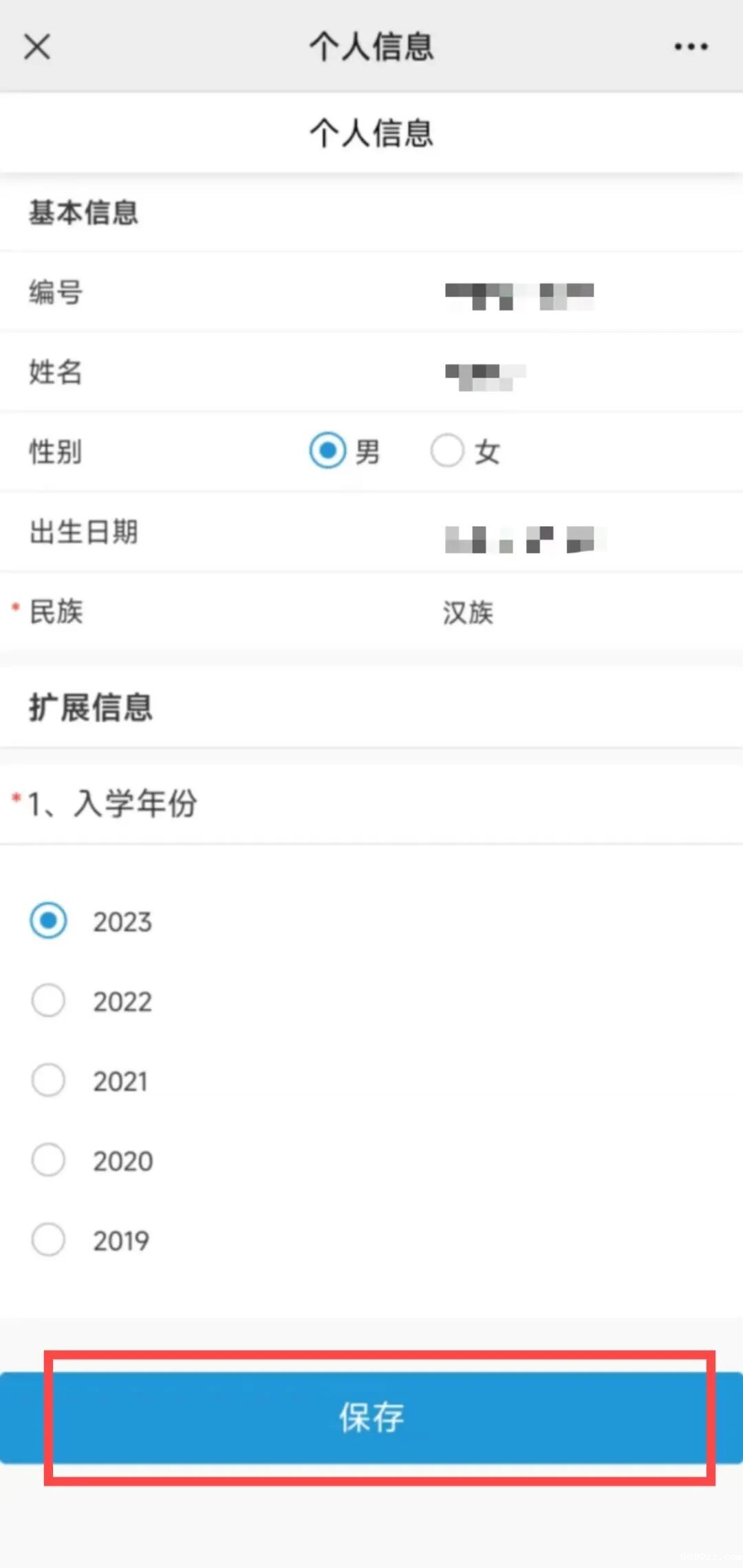 登陆后进入个人信息界面,信息核对无误后下滑点击“保存”,进入测评系统主界面。