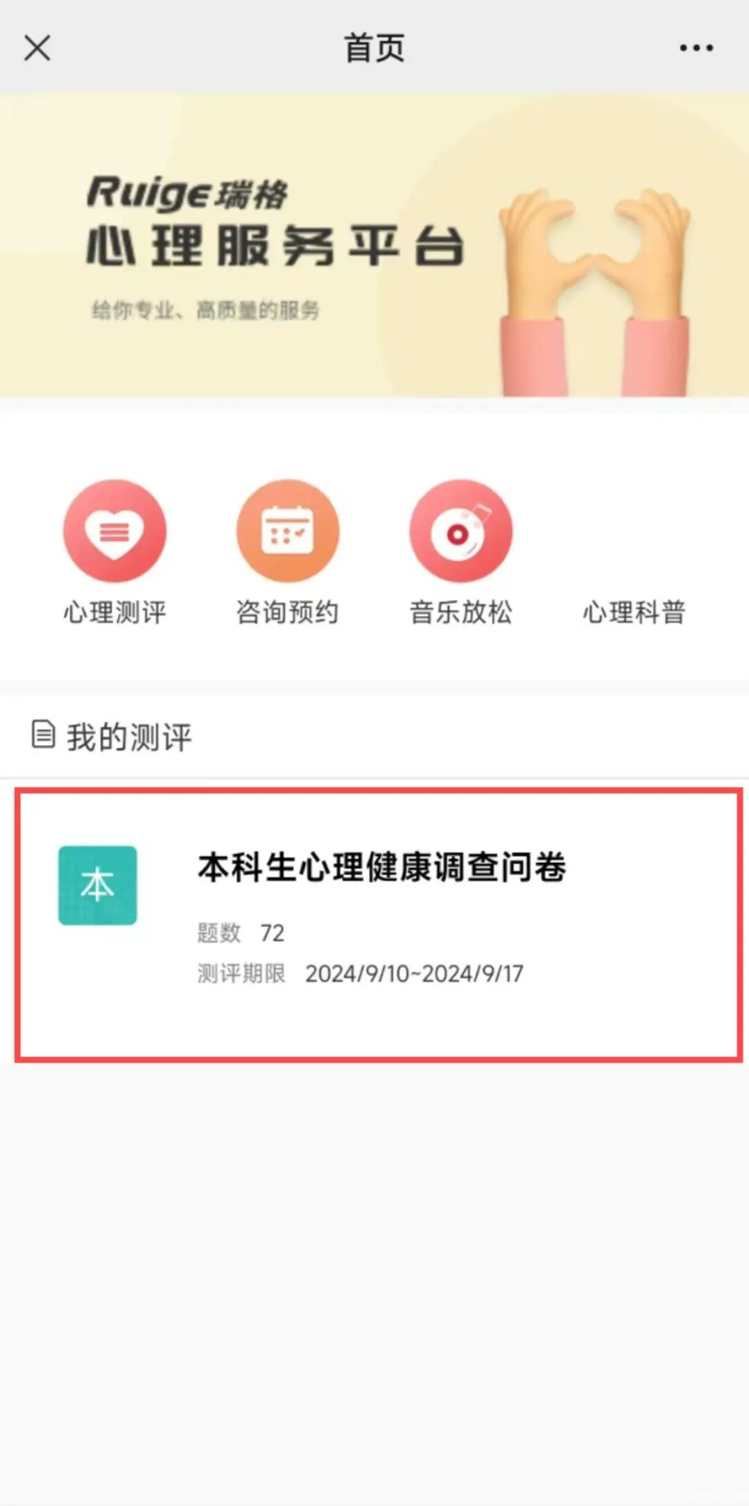 关注成功后,进入消息界面,点击菜单栏中“心理普查”,跳转至测评系统登录界面。