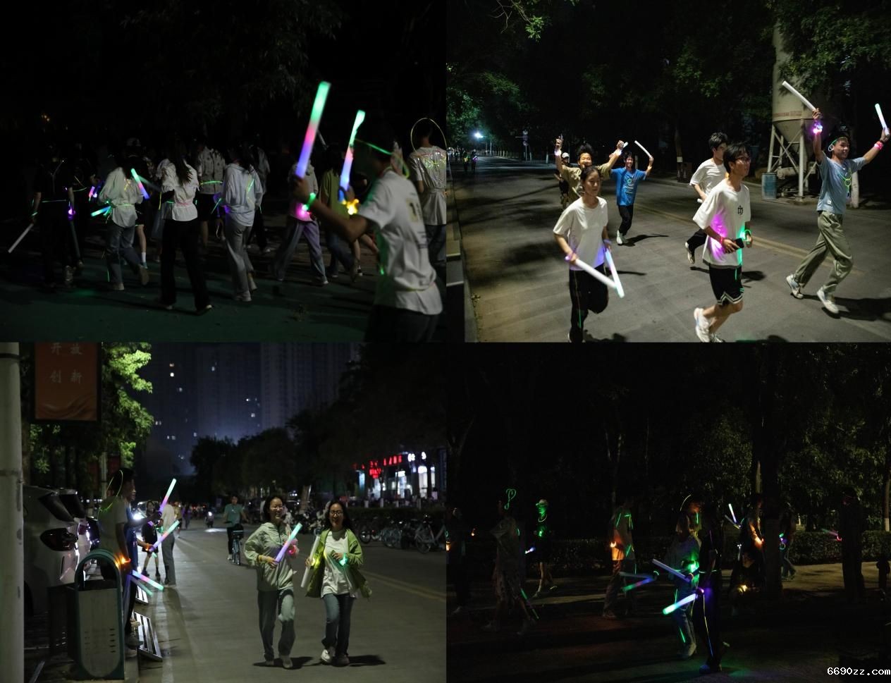 学院认真谋划、积极筹备,并在进行风险评估后严密组织了一场盛大的《荧光派对》之荧光夜跑以体强心活动。夜跑由两名身体素质较好的同学负责领跑;由23级班委担任安全员,分布在路线中车流量较大或岔路较多的路口,负责夜跑队伍行进方向并提醒来往车辆。