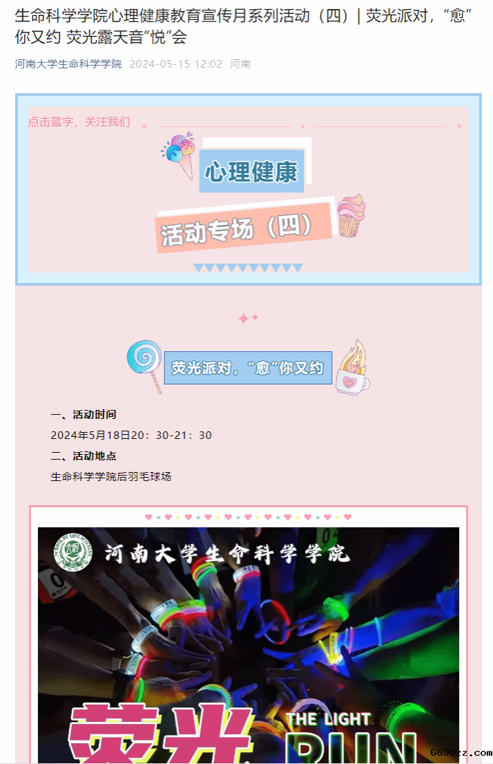为积极响应省委教育工委、省教育厅以及校心理健康教育与咨询中心关于开展2024 年全省高校“5·25”心理健康教育宣传月活动号召,生命科学学院积极筹备、紧紧围绕“五育润心,青春绽放”这个主题,以以德育心、以智慧心、以体强心、以美润心,以劳健心五个方面展开进行健康教育宣传月活动: