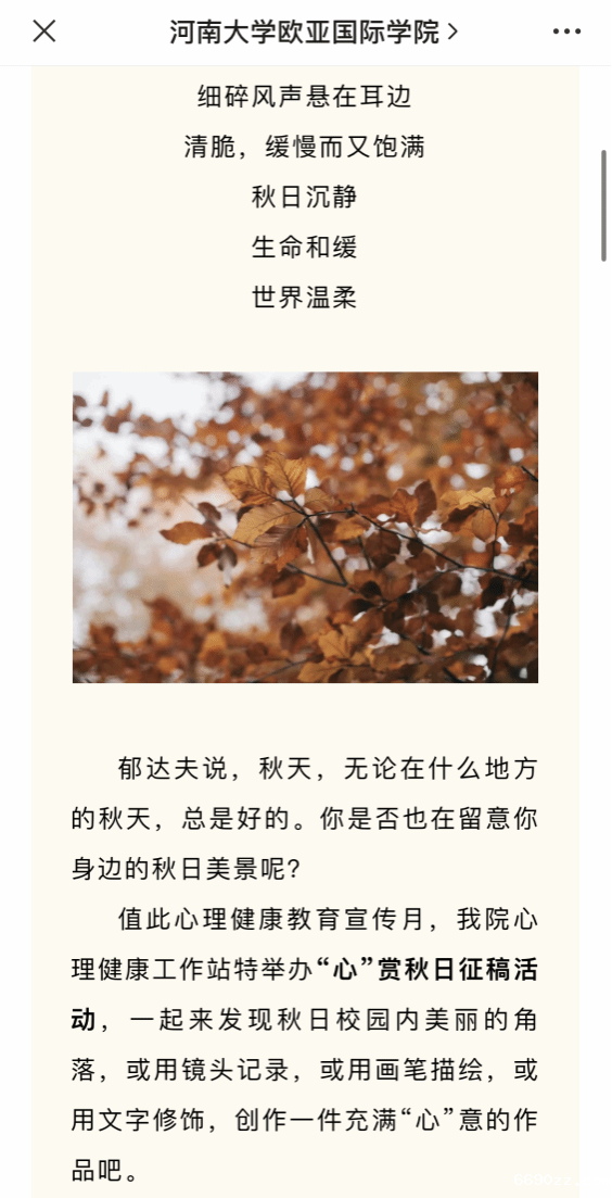 (五)欧亚国际学院“‘心’赏秋日”征稿活动