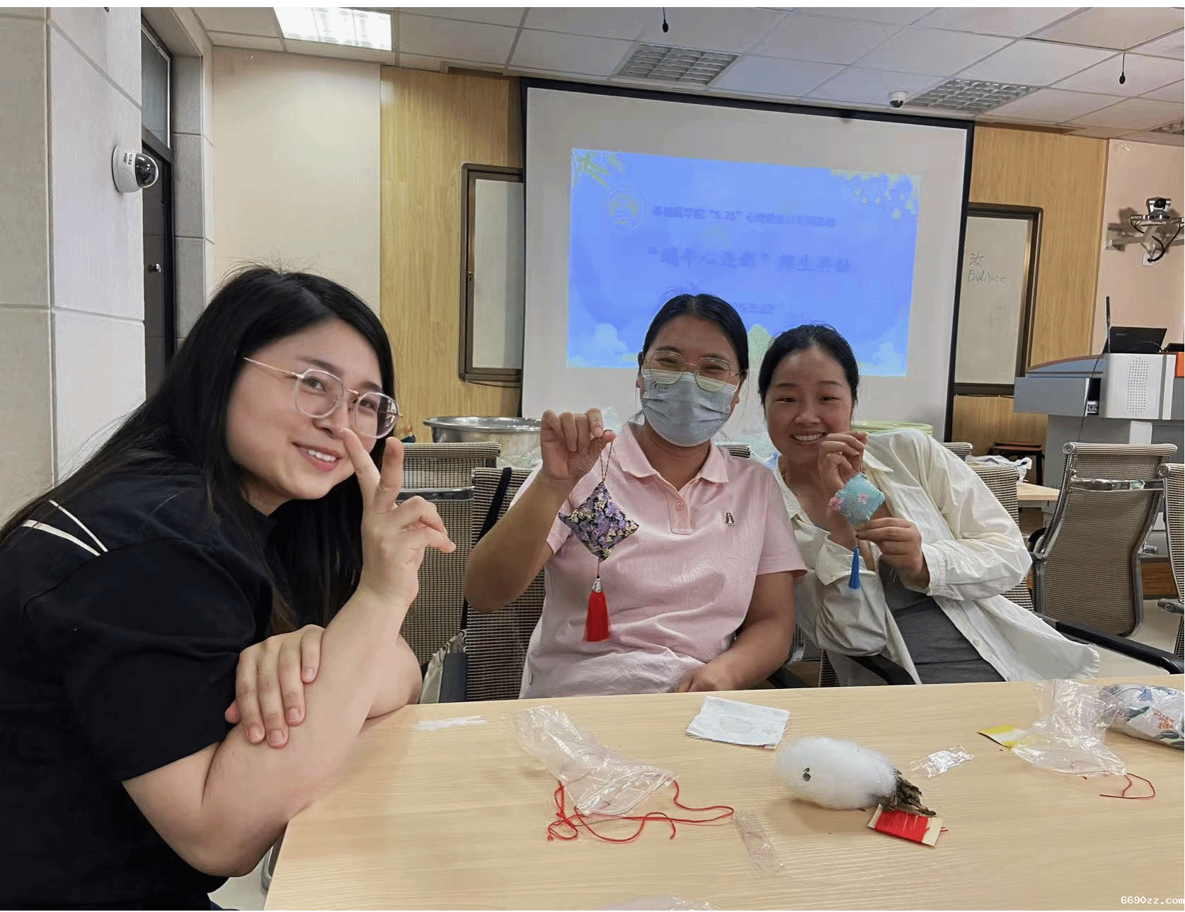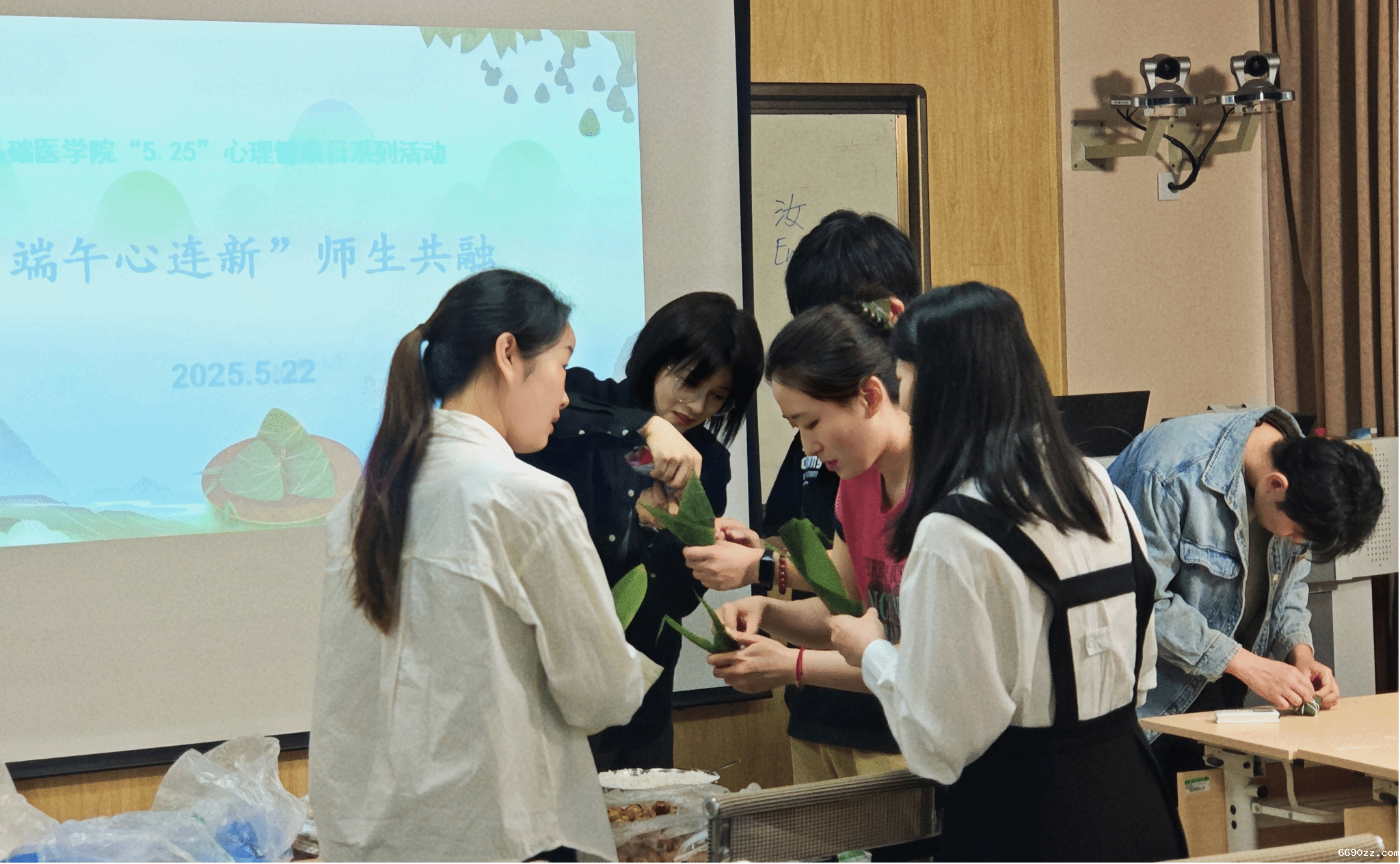 为弘扬中华优秀传统文化,深化师生情感联结,营造温暖和谐的校园心理育人氛围,5月22日下午,基础医学院以心理健康日与端午节为契机,在学院六楼多功能室举办“端午心连新”传统文化体验活动。通过包粽子、制香囊等民俗实践,师生共话传统、共融情感,探索“传统文化+心理健康教育”的育人新路径。