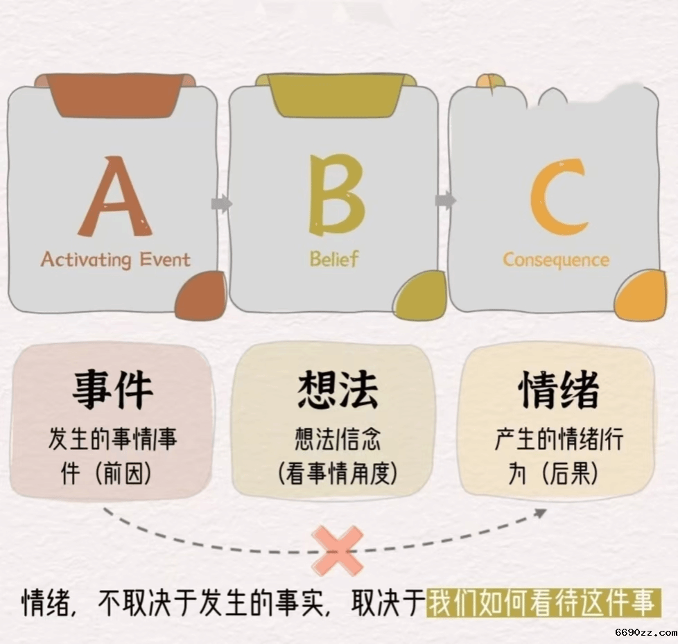 根据艾利斯的 ABC 理论,识别考试情境(A)下引发焦虑情绪(C)的不合理信念(B),例如“我必须在这次考试中取得好成绩,否则我就会被别人看不起”。而我们需要通过辨析原有不合理的想法,树立正确的信念,明白“考试并不代表一切,我的未来不会被一次考试否定”。正确理解考试的目的,对自己进行清晰正确的价值评估,以平常心态对待期末考试。